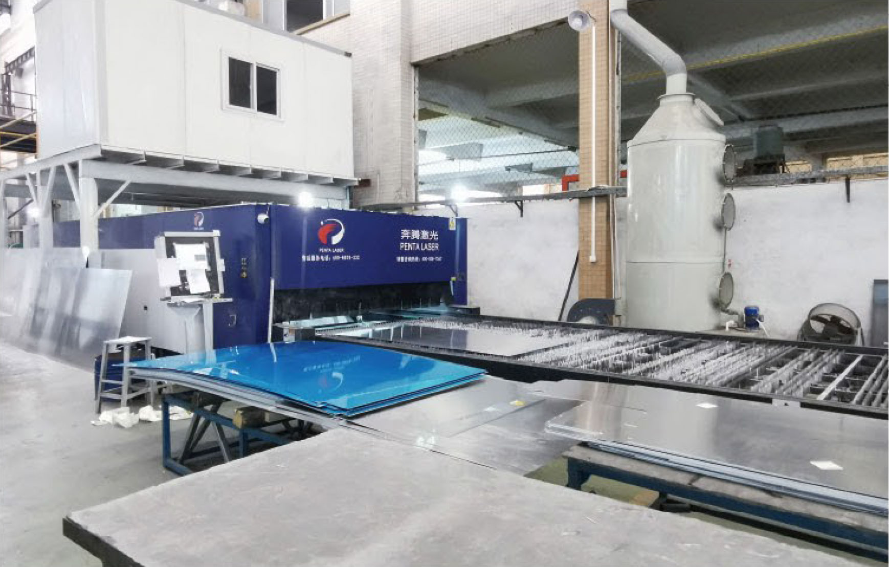 雷射開料一數控塔沖一成型(折彎、滾弧)→焊接→打磨→組裝→拋光→檢驗→轉噴塗